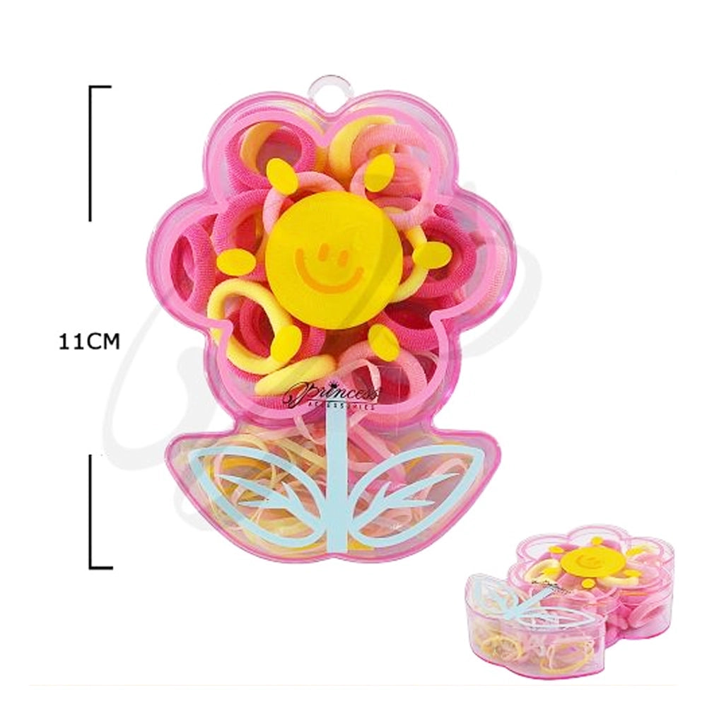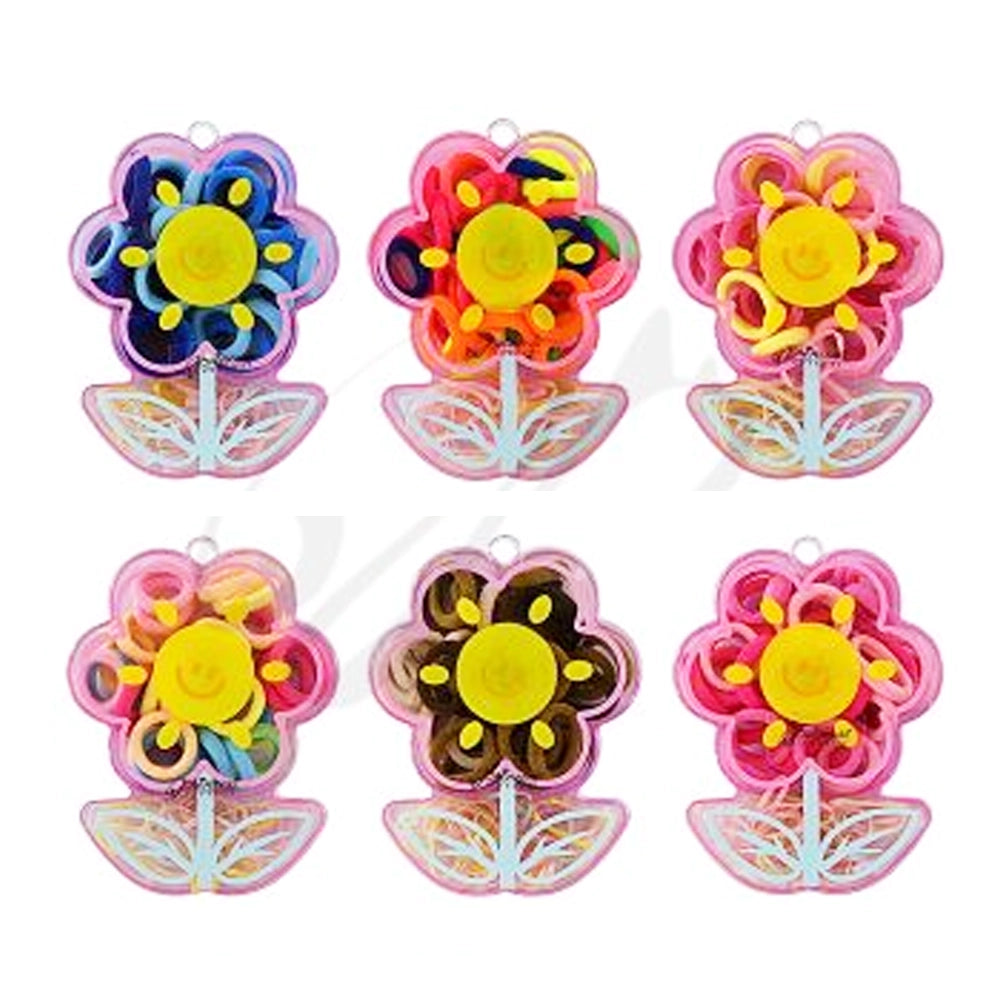 Smiley Flower Hair Tie Set – Colorful Elastic Bands with Storage Case (TK-976M)