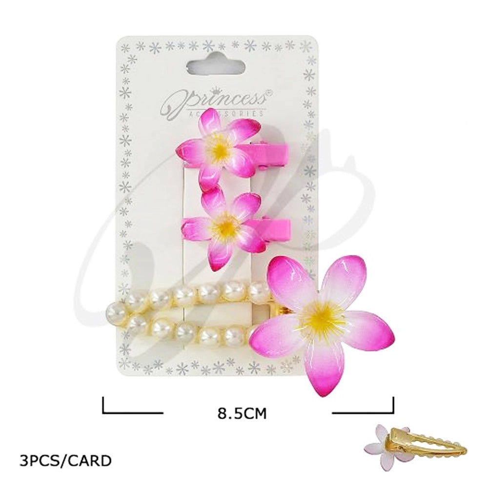 Tropical Frangipani Flower & Pearl Hair Clip Set (3-Piece) – Plumeria Floral Alligator Clips for Summer & Weddings (TK-983M)