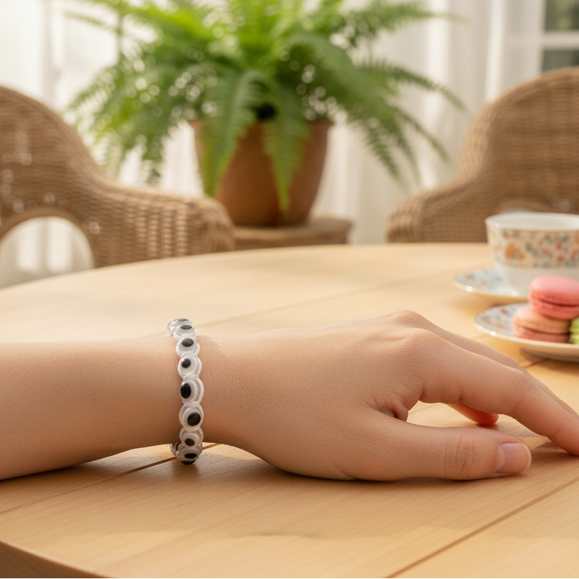 - Dainty Design: Tiny Evil Eye beads are strung continuously along the white cord for a subtle, detailed look.