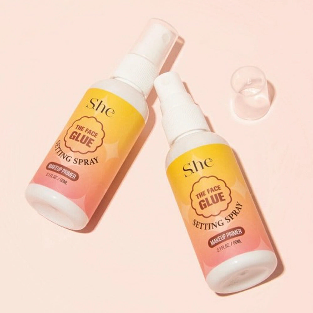 Lock it all the way in with The Face Glue Setting Spray by S.HE — the ultimate finishing spray that keeps your makeup fresh, flawless, and budge-proof all day (and night) long. This powerful, lightweight mist grips your look like glue without feeling sticky, tight, or heavy.